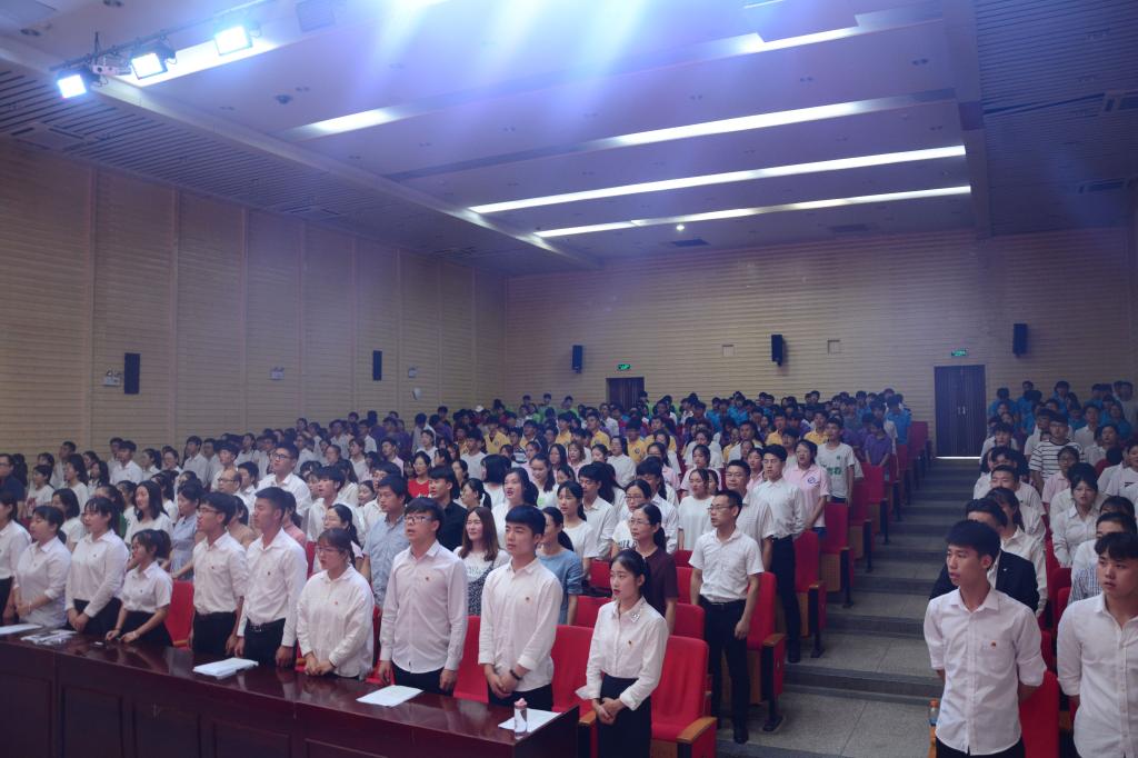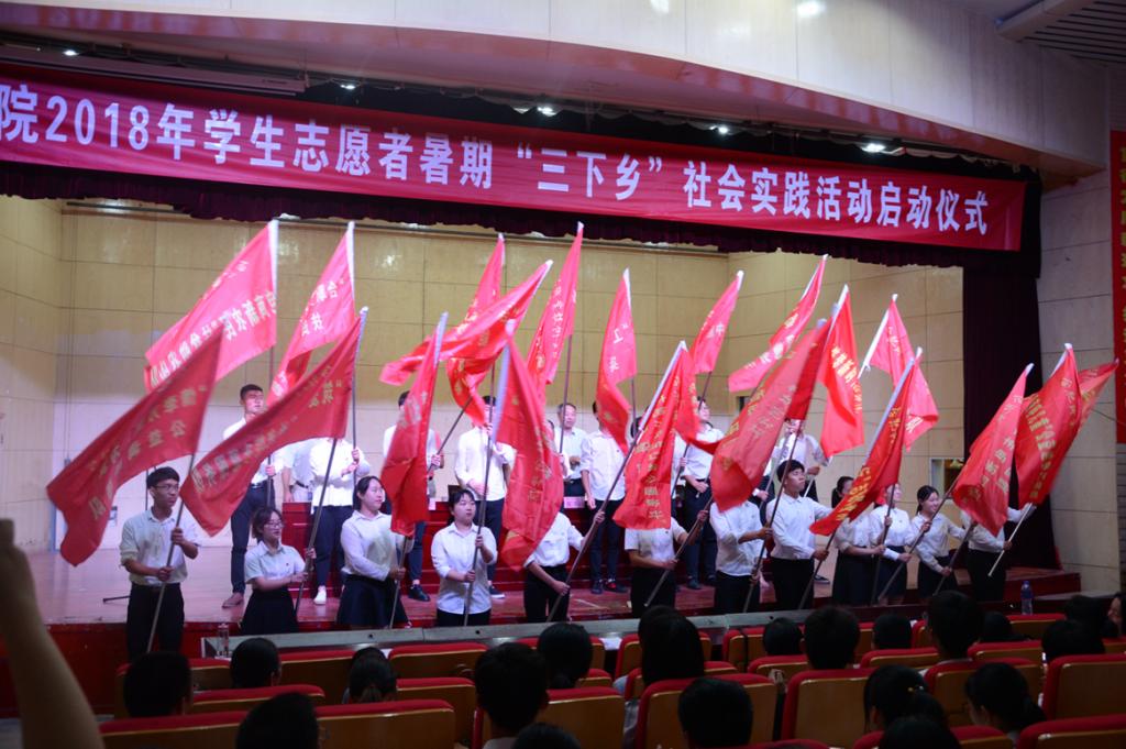 为引领广大青年学生认真领会和落实习近平总书记关于青年成长成才的一系列重要论述,做“有理想、有追求,有担当、有作为、有品质、有修养”的大学生,7月4日下午,AC米兰官网2018年大学生志愿者暑期“三下乡”社会实践活动启动仪式在大学生活动中心礼堂隆重举行。校党委副书记胡其云出席活动并讲话。组织(人事)部、教务处、学生处、思政部、团委等相关部门负责人、各二级学院团总支书记、暑期社会实践团队指导教师及学生代表近500人参加启动仪式。校团委书记佘海月主持启动仪式。
