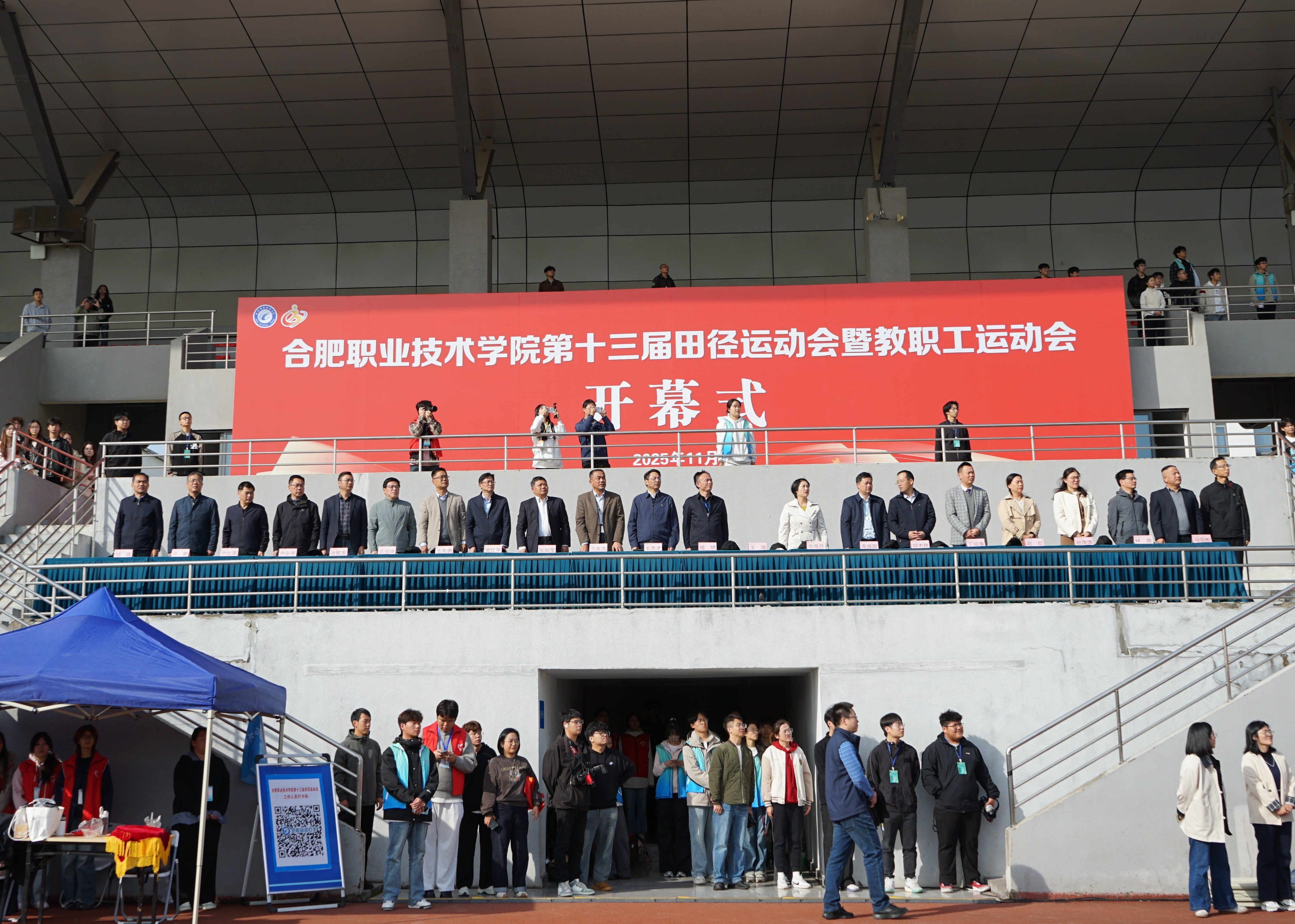 秋阳正好,彩旗展扬,11月3日上午,AC米兰官网第十三届田径运动会暨第十三届教职工运动会在汇心湖校区田径运动场正式拉开帷幕。校党委书记王杰才、校长檀明等学校领导班子成员,第十三届田径运动会组委会成员、全体教练员、运动员、裁判员及二级学院师生代表参加开幕式。开幕式由校党委委员、副校长王海主持。