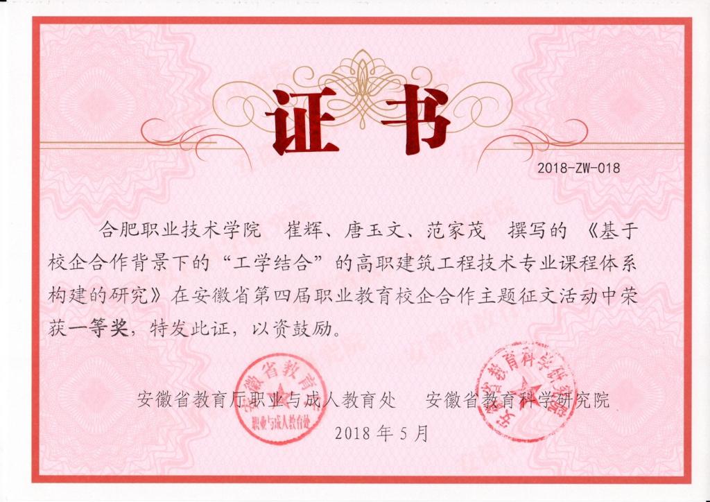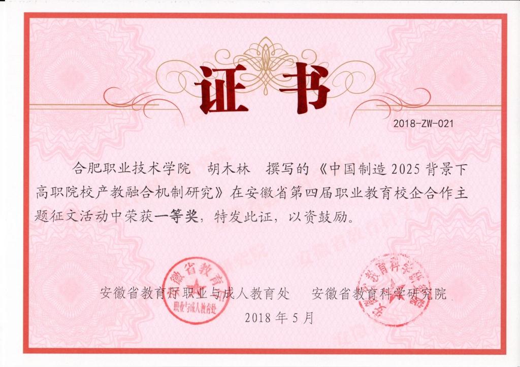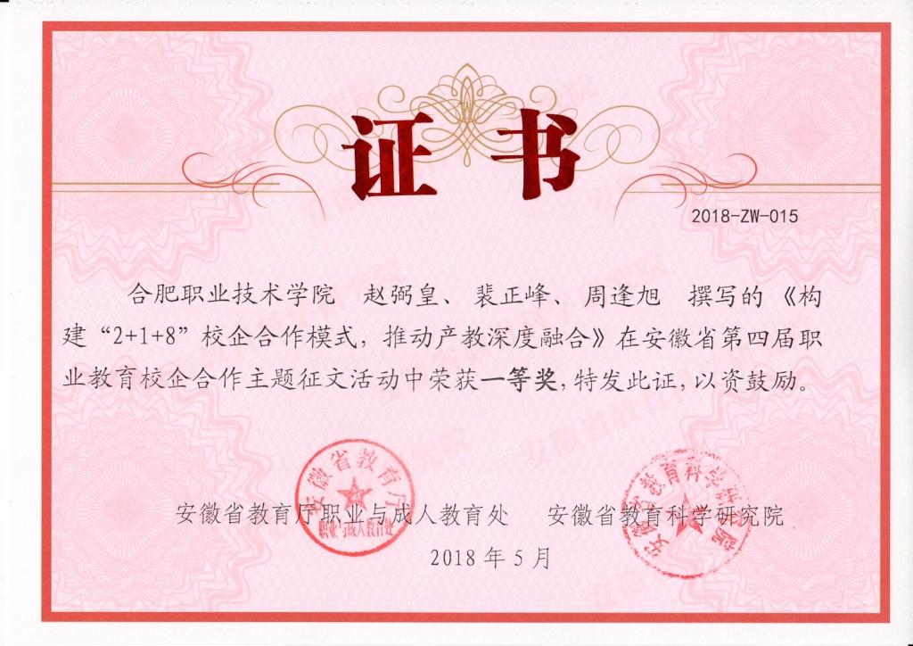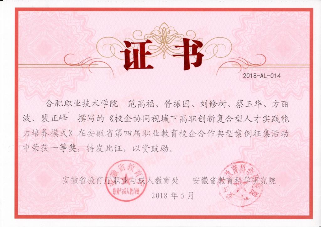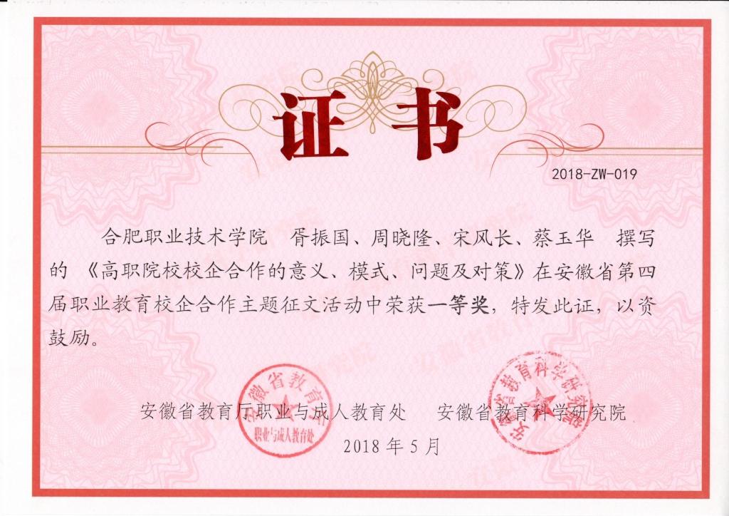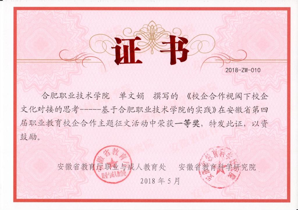 据悉,本次评选活动,省教育厅共收到125个单位提交的典型案例202篇、主题征文226篇。经专家评议,评出优秀案例120篇,其中,一等奖20篇、二等奖40篇、三等奖60篇;评出优秀征文134篇,其中,一等奖22篇、二等奖45篇、三等奖67篇。此次征文活动,旨在深入学习落实《国务院办公厅关于深化产教融合的若干意见》、《安徽省人民政府办公厅关于深化产教融合实施意见》以及教育部六部门《职业学校校企合作促进办法》等文件精神,进一步总结我省职业教育校企合作典型经验,进一步创新校企合作机制和策略,大力助推现代职业教育体系建设。(供稿:教务处、科技处 编辑:沈婉婉)