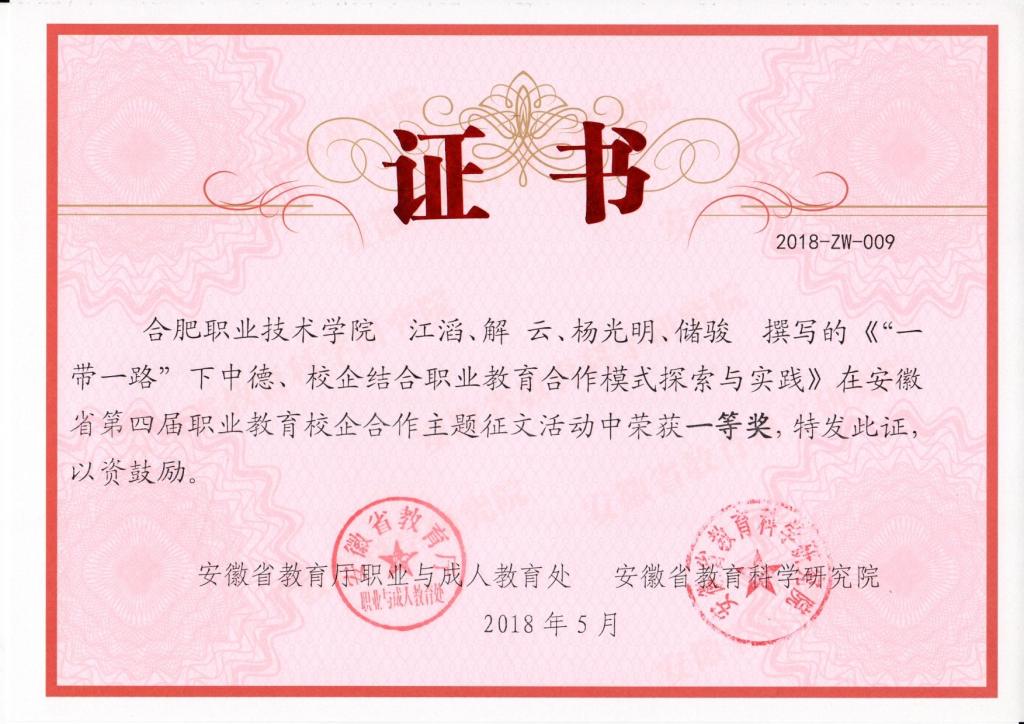 日前,由安徽省教育厅和安徽省教育科学研究院联合举办的第四届安徽省职业教育校企合作典型案例征集和主题征文活动评选结果揭晓。AC米兰官网报送的17篇作品在428篇参评作品中脱颖而出,取得优异成绩,分别获得一等奖7个、二等奖5个、三等奖5个。