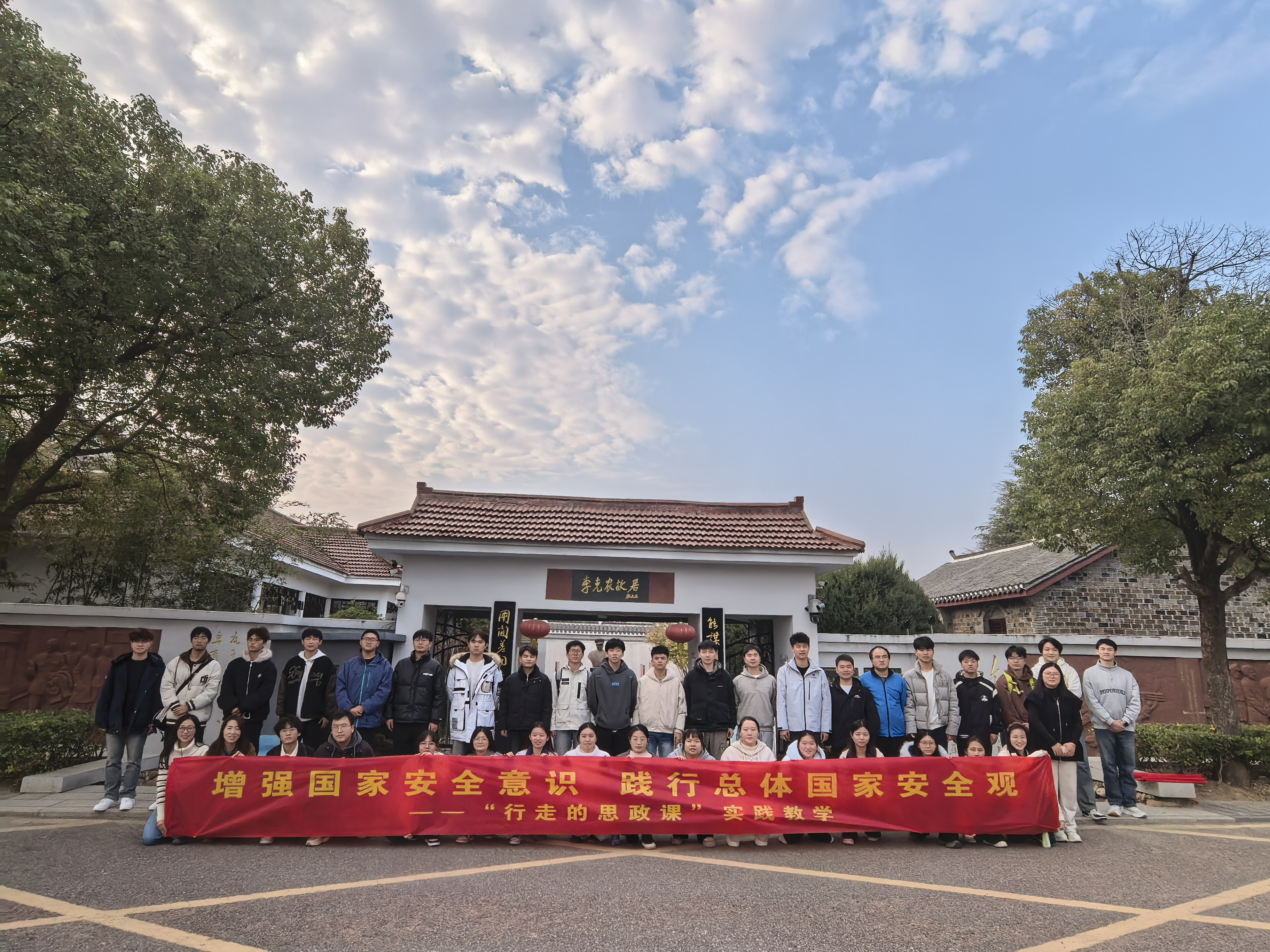 为深入学习贯彻总体国家安全观,创新思想政治理论课教学模式,推动理论讲授与实践体悟深度融合,12月10日,马克思主义学院组织《习近平新时代中国特色社会主义思想概论》课程学生,前往巢湖市烔炀镇中李国家安全教育馆、李克农故居,开展了一场以“增强国家安全意识,践行总体国家安全观”为主题的沉浸式实践教学活动。2025级金融班、通信工程本科班共50余名学生在思政课教师的带领下参加了本次活动。