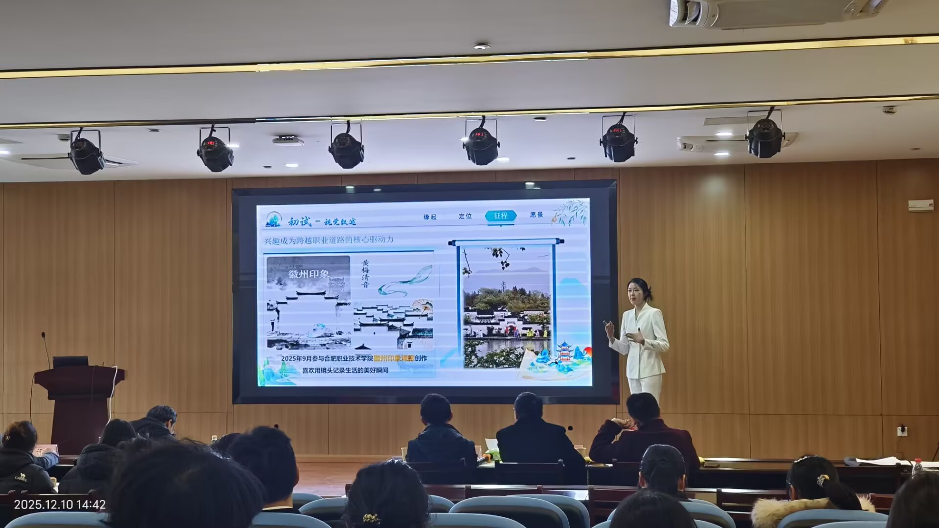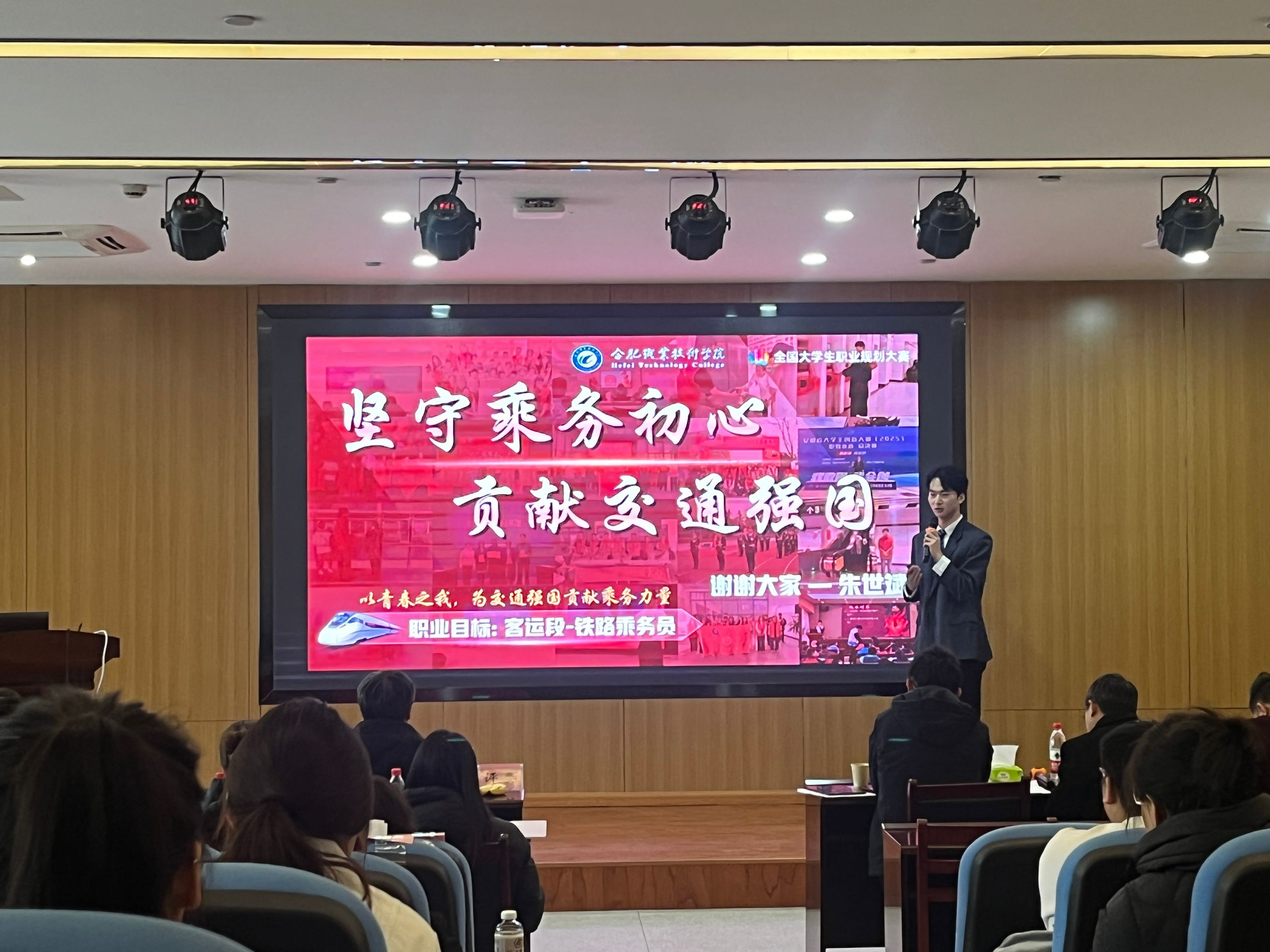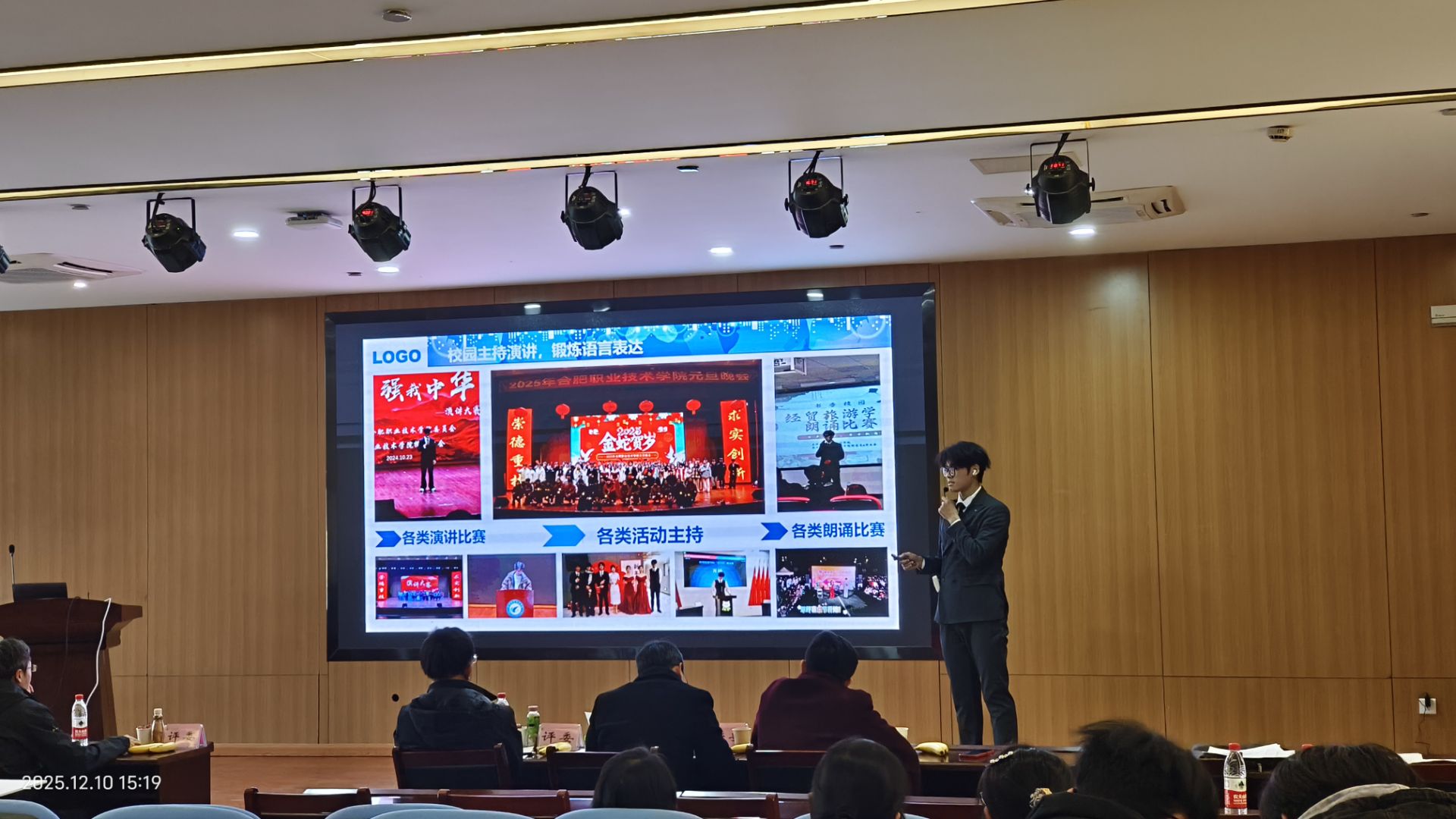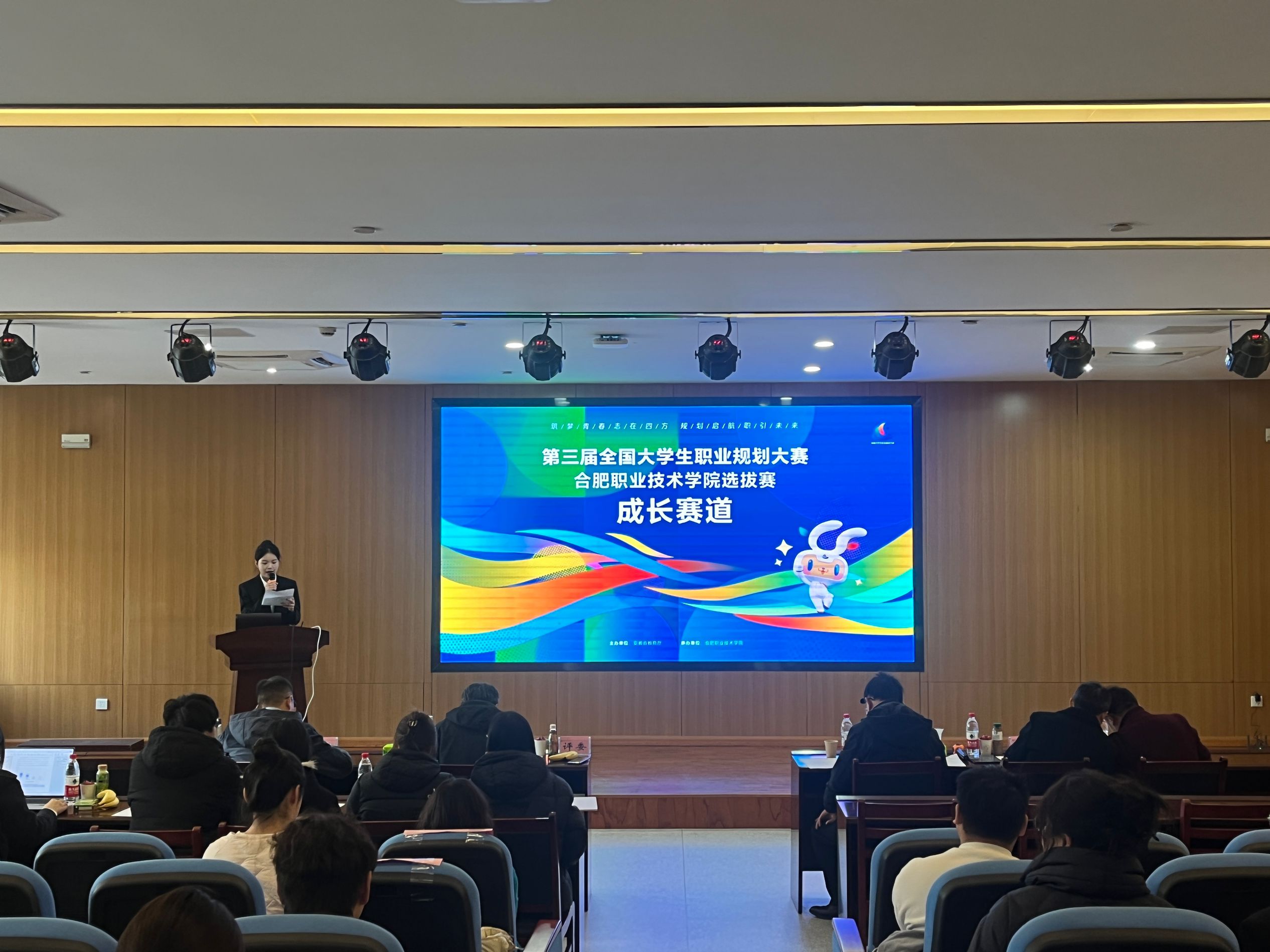 来自全校7个学院的17名优秀选手在学院初赛中脱颖而出,汇聚校级决赛舞台,其中成长赛道选手10名,就业赛道选手7名。本次大赛邀请到合肥师范学院、巢湖学院、安徽中医药大学、合肥幼儿师范高等专科学校、合肥致行树教育有限责任公司、安徽信通信息服务有限公司等单位的专家担任大赛评委,共同呈现了一场精彩纷呈的思维碰撞与才华展示盛宴。