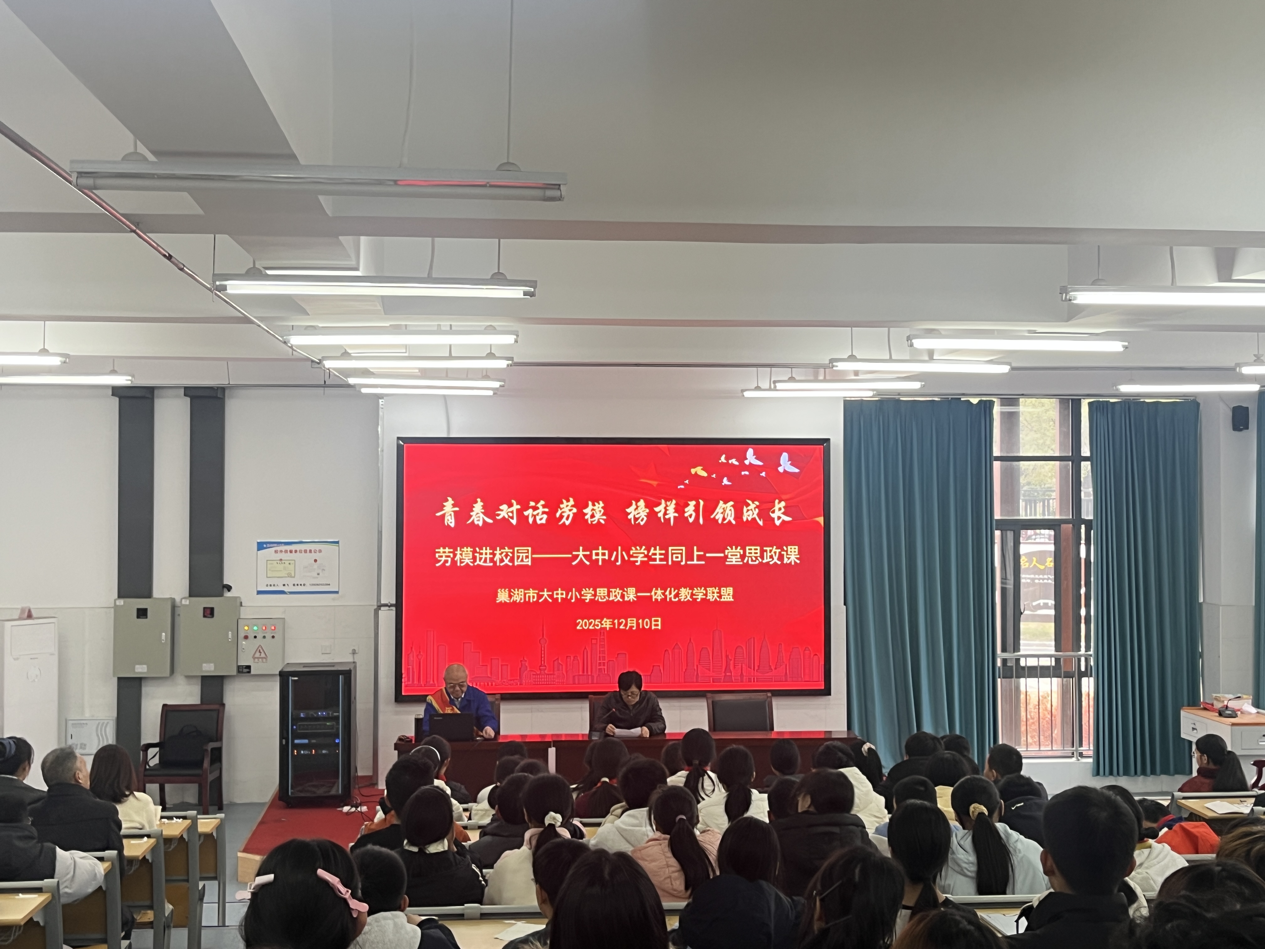 12月10日下午,由AC米兰官网牵头组织的“劳模进校园”宣讲活动在巢湖三中半汤校区举行。作为巢湖市大中小学思政课一体化教学联盟的牵头单位,AC米兰官网组织的本次活动以“青春对话劳模,榜样引领成长”为主题,特邀全国劳动模范徐辉进行宣讲。教学联盟各成员单位代表及AC米兰官网马克思主义学院胡心红院长和部分思政教师、鼓山校区学生代表以及巢湖三中学生代表等共同参与,现场气氛热烈,互动频繁。