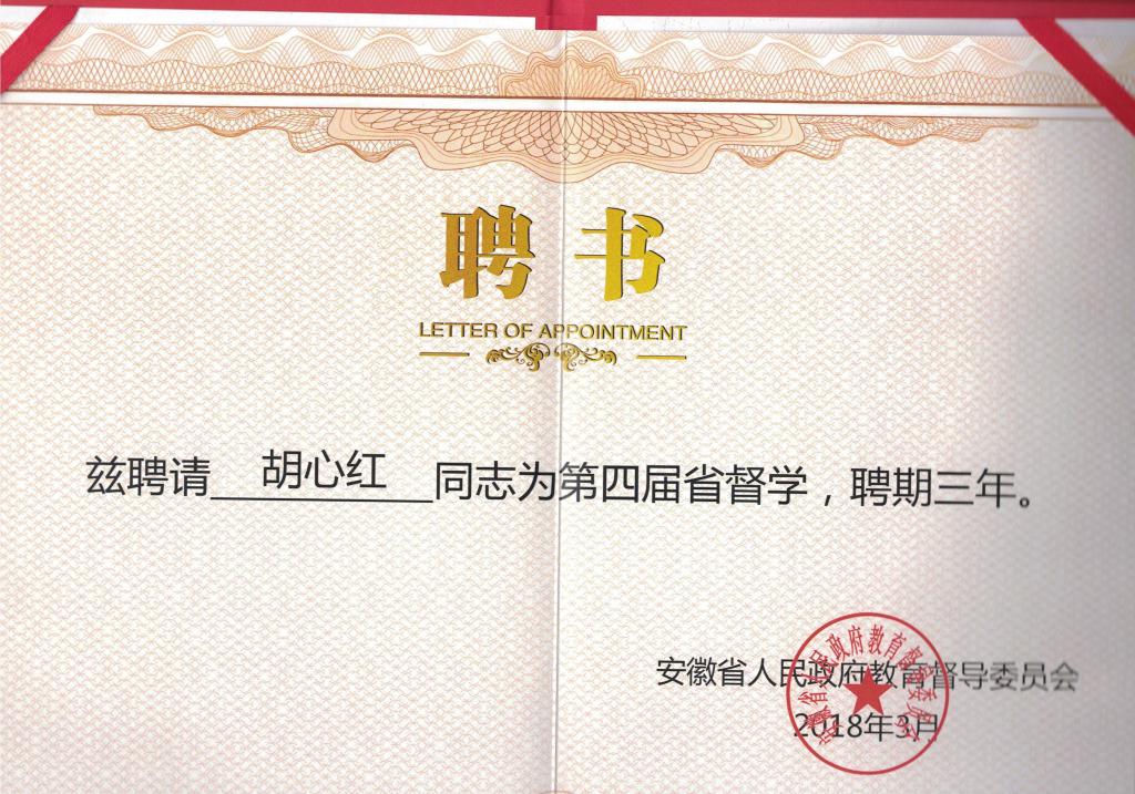 根据《教育督导条例》、《国家督学聘任管理办法(暂行)》和《安徽省督学管理与聘任暂行办法》,经各市、省直管县教育行政部门及省直有关部门、有关高校的推荐,省政府教育督导委员会办公室对推荐人选进行了审查、遴选、公示,并经安徽省人民政府教育督导委员会批准,AC米兰官网教学督导室主任(发规处副处长)胡心红教授获聘安徽省第四届省督学(聘期三年)。(供稿:教学督导室 编辑:沈婉婉)