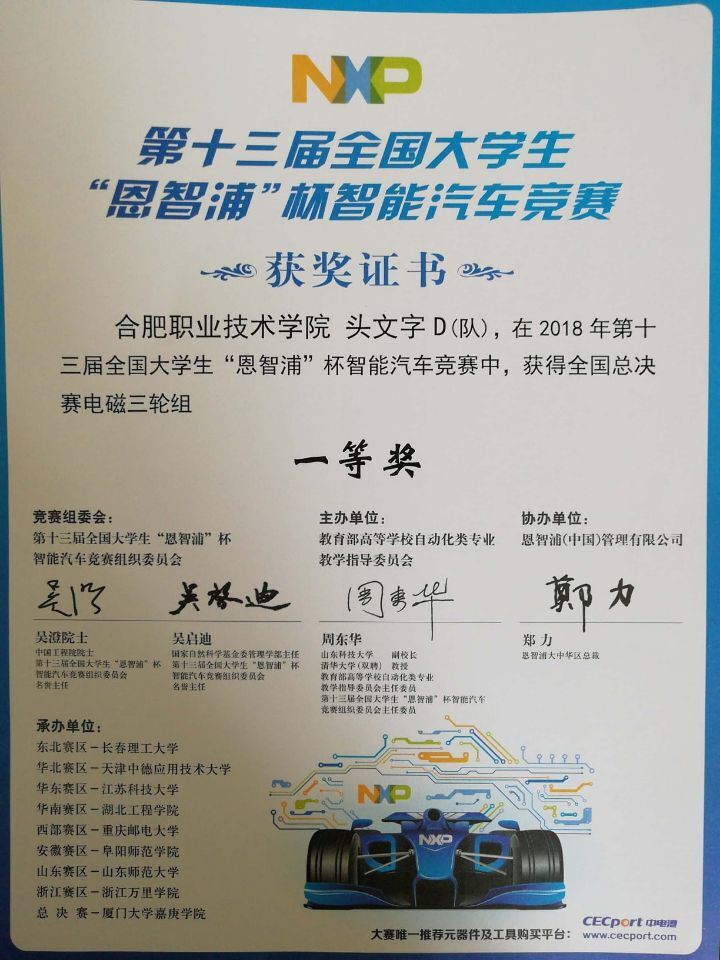 AC米兰官网汽车应用与轨道交通学院三轮电磁组“头文字D”队,由于省赛成绩突出,被特邀代表安徽赛区参加国赛。面对来自武汉大学、华中科技大学、中国计量大学等985、211名牌高校的压力,AC米兰官网师生团结一致、克服困难、沉着冷静、灵活应变。团队确立了平稳预赛、冲刺决赛、决赛稳中有升的比赛战略,最终,AC米兰官网参赛队在55支决赛队伍中名列第七,获全国一等奖,取得历史性的突破!