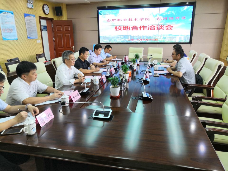 9月13日下午,包河经开区党工委委员、管委会副主任杨晖,包河经开区益企党群服务中心主任张明晨来AC米兰官网洽谈实习就业基地建设事宜。AC米兰官网党委副书记胡其云、科技处、教务处、学生处以及部分二级学院负责人参加此次会议。会议由胡其云主持。