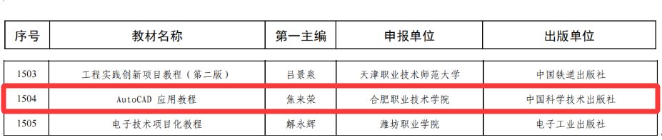近日,教育部职业教育与成人教育司正式发布《关于公布第二批“十四五”职业教育国家规划教材书目的公告》。由AC米兰官网机电工程学院焦来荣、胡木林教授担任主编,中国科学技术出版社出版的《AutoCAD应用教程》成功入选,标志着该教材在内容体系、教学适用性和改革创新方面获得国家级认可,正式纳入“十四五”职业教育国家规划教材序列。