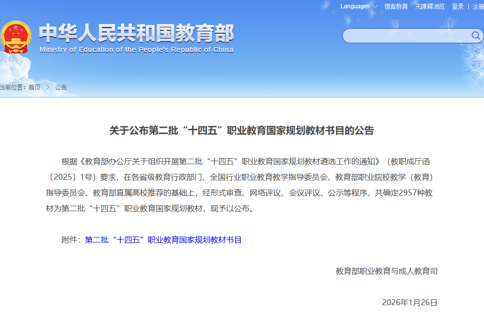 此次入选,既是对教材编写团队长期以来辛勤耕耘与教学改革成果的高度肯定,也将进一步促进该教材在全国范围内的推广与应用,为深化职业教育教学改革、提升技术技能人才培养质量发挥示范与引领作用。(供稿:机电工程学院 侯伦元 初审:宋忠春 审核:杨璨)