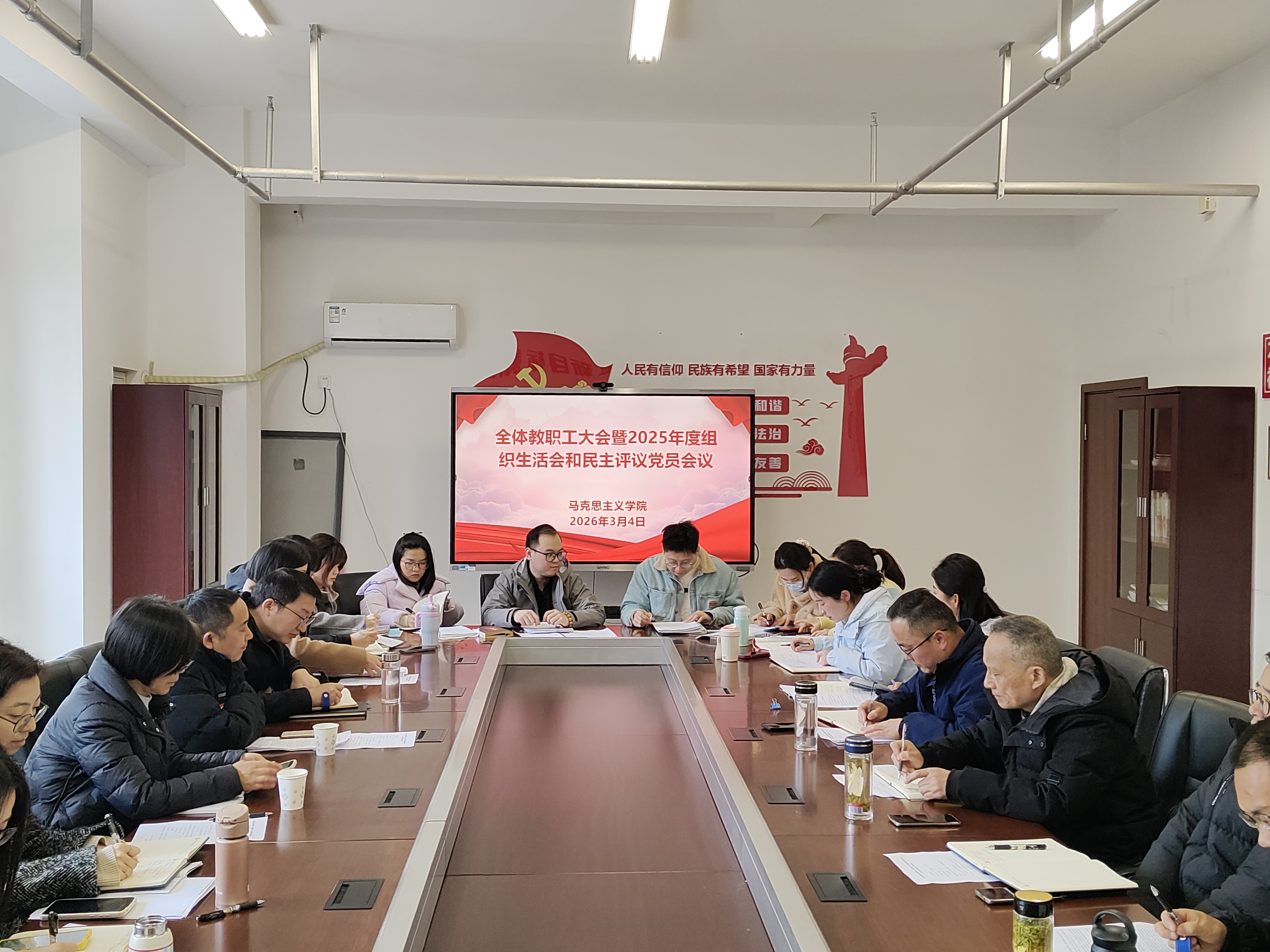3月4日下午,马克思主义学院在汇心湖校区该院会议室召开全体教职工大会暨2025年度组织生活会和民主评议党员会议,全体教职工、党员参加会议,会议由该院党支部书记王文飞主持。