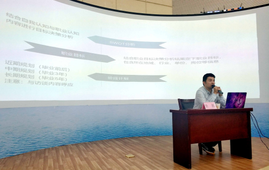张鹏老师首先从如何写好大学生职业生涯规划书的五个方面做出详细的讲解,并结合建筑类专业特色对学生进行就业前景的分析,让同学对个人职业规划有了更深层次的了解。