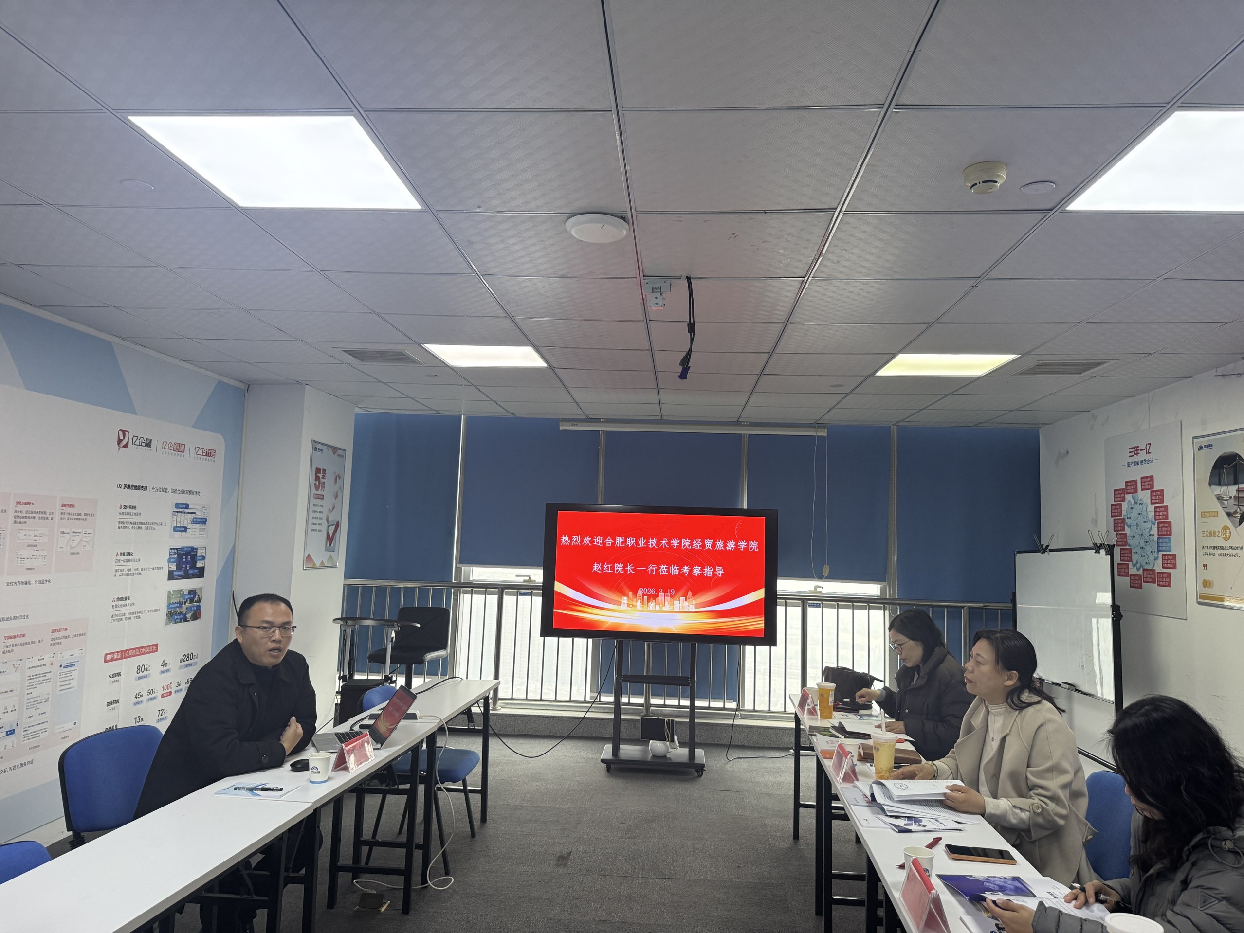 为深化产教融合,精准对接行业需求,进一步提升技能型人才培养质量,3月19日下午,经贸旅游学院院长赵红、副院长付晓兰、教研室主任王欢及专任教师刘颖一行,前往亿企赢网络科技有限公司安徽分公司、安徽云畅数据科技有限公司开展参观考察与座谈交流活动,围绕校企合作项目、教师实践能力提升及学生实习就业等事宜进行深入探讨。