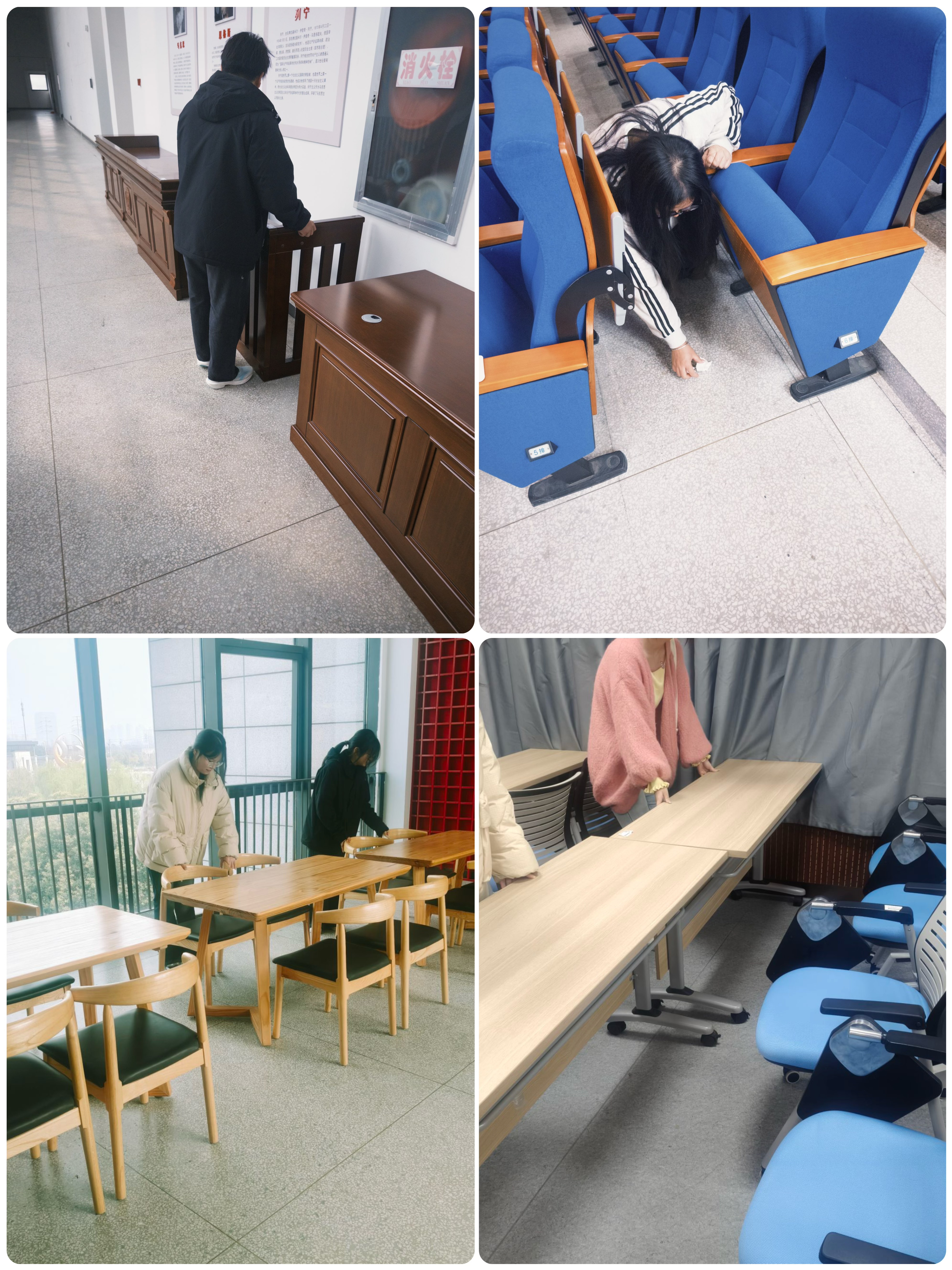 活动中途,志愿者们分工协作、配合默契,充分展现出积极饱满的精神面貌。大家不怕脏、不怕累,耐心将零散物资分类打包,对破损物资进行简单整理,将各类物资按规格、用途整齐摆放至指定储物区域,细致擦拭物资与场地灰尘,不放过任何一处角落。他们动作麻利、秩序井然,用实际行动诠释着奉献、友爱、互助、进步的志愿精神,全程坚守岗位,毫无怨言。