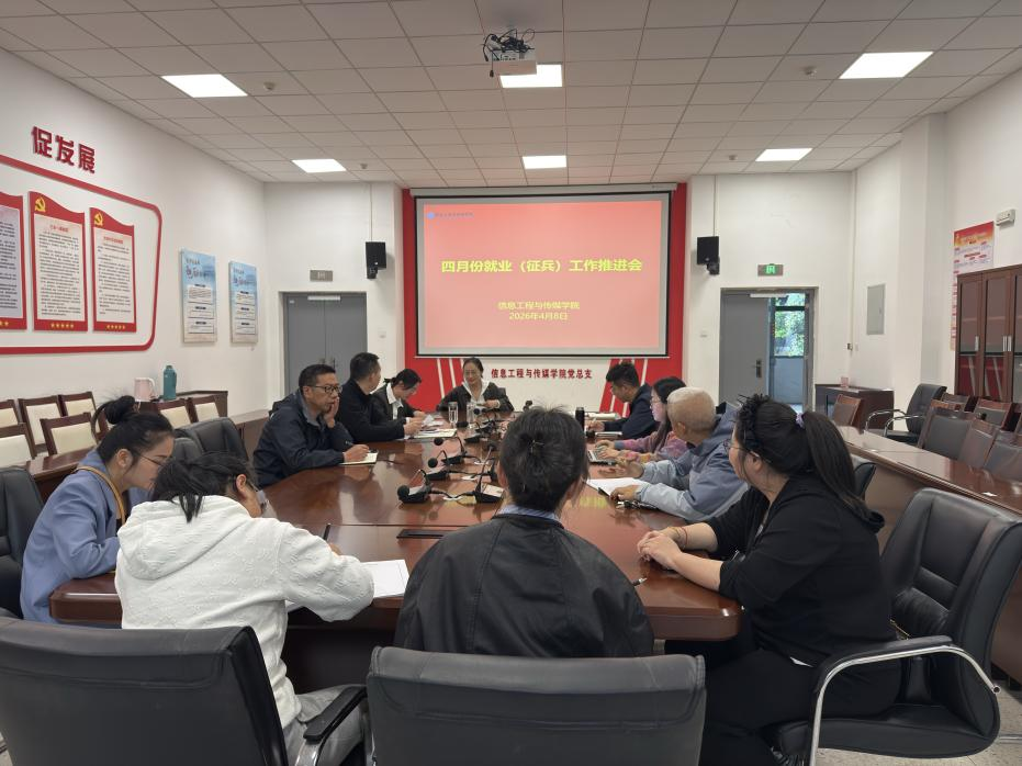 为进一步做好2026届毕业生就业与征兵工作,扎实推进各项任务落实,4月8日下午,信息工程与传媒学院在一楼会议室召开4月份就业(征兵)工作推进会。该院领导、全体毕业班辅导员参加会议。会议由该院党总支副书记江寅昌主持。