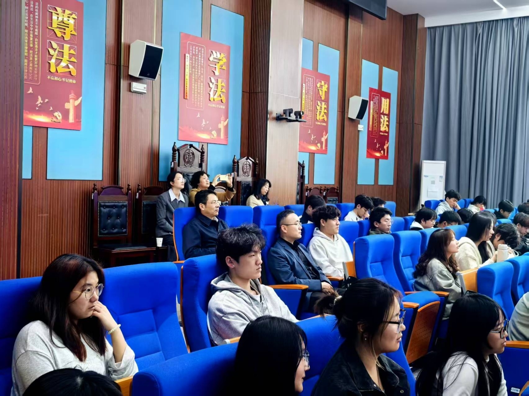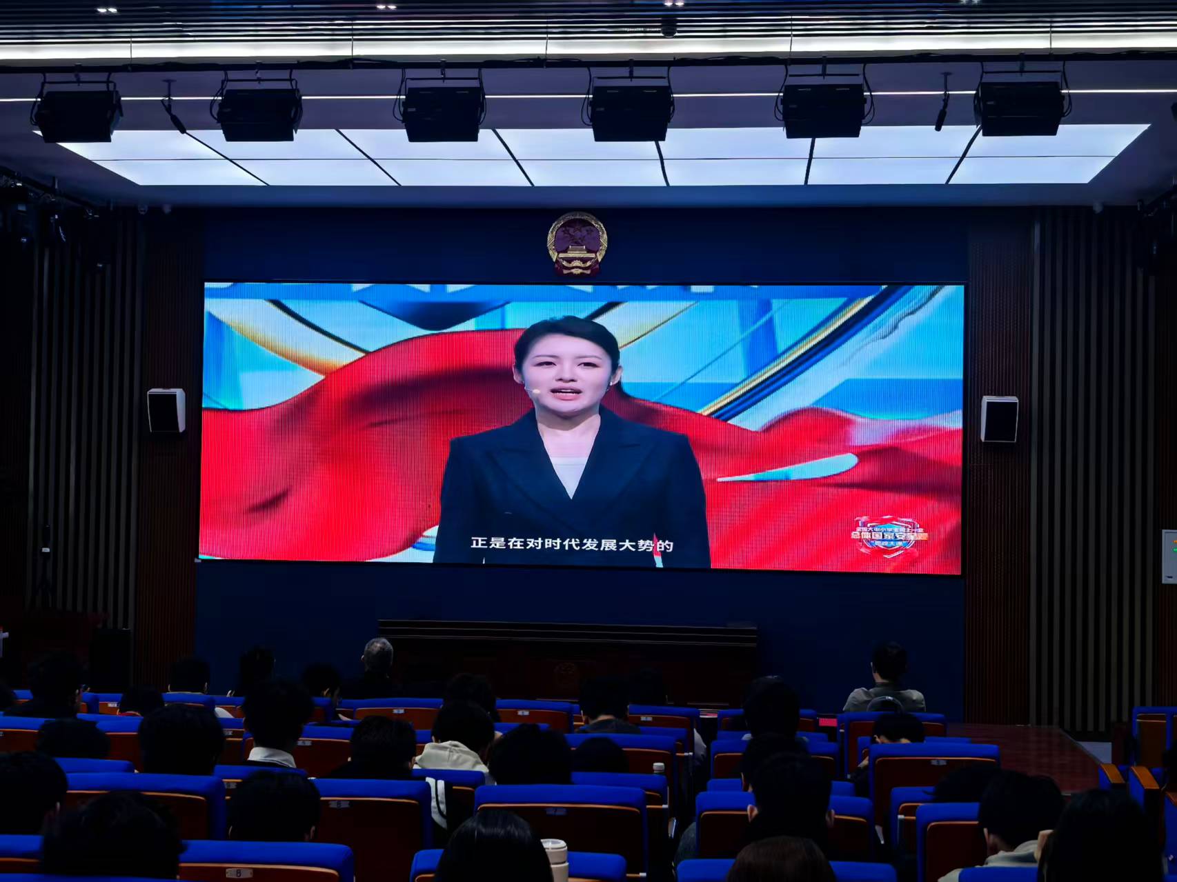 马克思主义学院组织师生在模拟法庭集中观看全国大中小学生同上一堂总体国家安全观“思政大课”,引导学生自觉把个人成长与国家发展、国家安全紧密结合起来,增强维护国家利益的思想自觉和行动自觉。