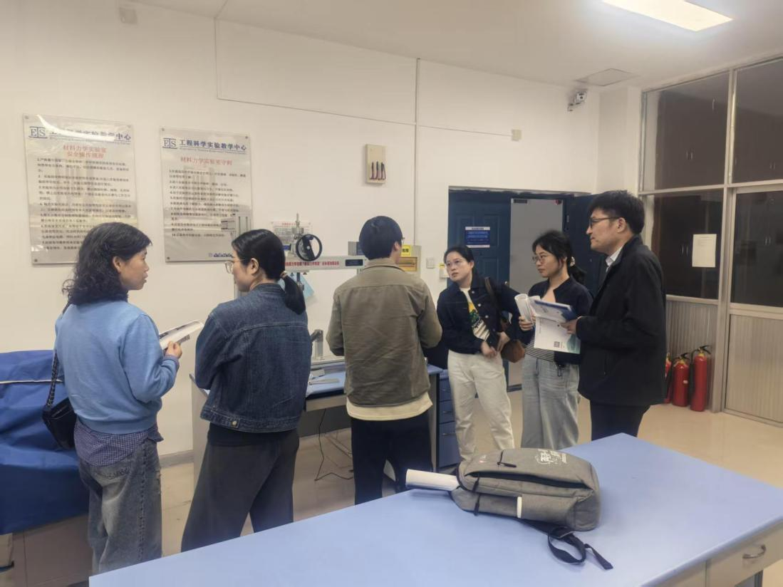 在中国科学技术大学工程科学实验教学中心,团队实地观摩了多功能力学组合实验台、材料力学性能测试实验室等,并就设备选型、实验项目开发、学生创新能力培养等问题与技术人员进行了深入交流。中科大工程科学实验教学中心先进的实验条件、严谨的实践教学体系以及“以学生为中心”的实验教学理念,给调研团队留下了深刻印象。