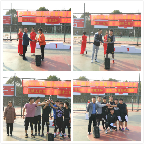 为建立更加紧密的校企合作关系,增进校企之间的文化交流,经过双方的精心筹备,建筑工程学院“合肥建工杯”暨第二届迎新杯篮球赛决赛于11月24日下午在校篮球场举行。此次比赛于10月24日拉开帷幕,建筑工程学院17、18年级共16支球队经过一个多月共18场比赛的激烈角逐,最终由17级建工联队和17级工造4班队晋级决赛。比赛中,双方队员本着“友谊第一,比赛第二”的体育精神,充分展示出个人精湛的篮球技艺、体现了良好的团队合作精神,整场比赛打得既激烈又流畅。最终,17级建工联队获得本次比赛的冠军,17级工造4班队获得亚军,17级工造2班队获得季军, 18级建装联队获得道德风尚奖。合肥建工集团人力资源部经理石良仕、副经理彭雪雨,建筑工程学院党总支书记李红雨、院长范家茂、副院长魏永恒等领导和老师出席了本次活动并给获奖球队颁奖。