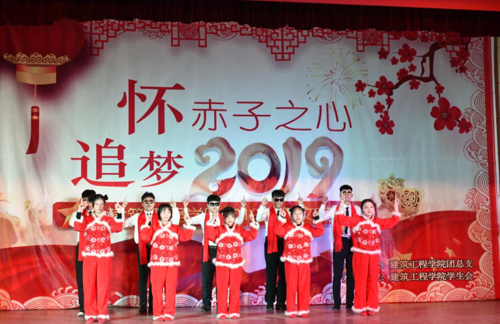 整场晚会节目精彩纷呈,现场气氛热烈,台上台下,笑声、掌声、喝彩声此起彼伏,全场师生在一片欢声笑语中共庆新年。告别2018,奔向2019,我们将牢记习近平总书记的话,奋斗路上,我们都是奔跑者,我们都是追梦人!(供稿:建筑工程学院 编辑:朱鹏飞)