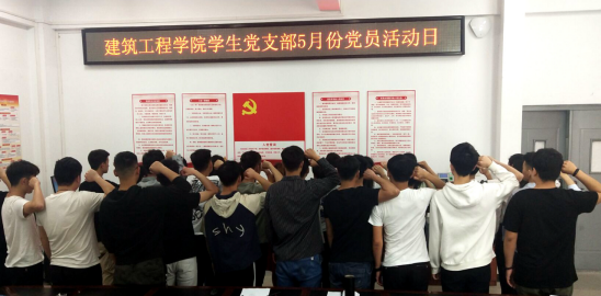 最后,与会全体学生党员在支部宣传委员杨靖同志的带领下,向着党旗庄严宣誓,立志永远听党话,跟党走。无论在何时、无论在何方,我心永远向党!(供稿:建筑工程学院 编辑:朱鹏飞)