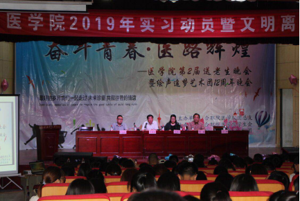 5月15日下午,医学院2019年实习动员暨文明离校大会在大学生活动中心二楼礼堂如期进行,出席此次活动的有医学院院长王荣俊、医学院副书记(主持工作)孙美兰、医学院副院长蒋斌和部分专业课教师、辅导员。大会由孙美兰主持。