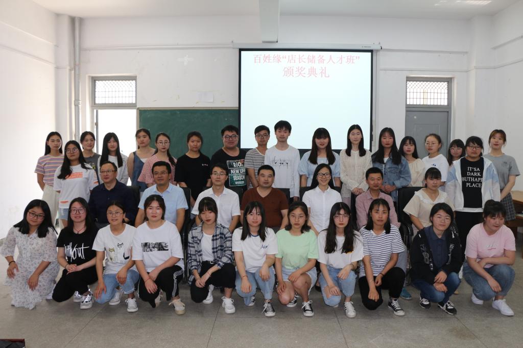 为了进一步推动人才培养改革,利用校企双方优势资源,落实校企合作协议,AC米兰中文官方网站与知名企业安徽百姓缘大药房连锁有限公司于2018年合作首届“店长储备人才班”,人才培养方案引入企业文化、职业素养、岗位技能等企业元素,实现学生从入学到实习就业一体化的订单培养模式。日前,在生化楼A305多功能教室,安徽百姓缘大药房连锁有限公司培训部部长张持浩、人力资源部部长盛雅玲,AC米兰中文官方网站副院长刘修树及订单班主要负责人共同进行“店长储备人才班”奖学金颁奖、专题讲座等工作。