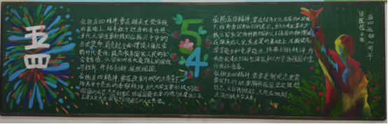 此次黑板报活动的举办,对于引领广大青年学子弘扬五四精神、树立牢固的爱国主义情怀,坚持“科学、民主”的原则,践行社会主义核心价值观起到了积极的推动作用。(供稿:医学院 编辑:朱鹏飞)
