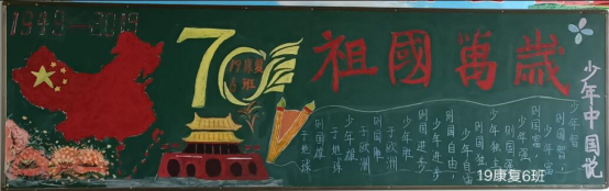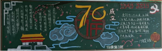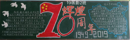 为了庆祝新中国成立70周年,培养学生的爱国情怀,医学院团总支于10月1日至10月15日组织学生开展了“欢庆新中国成立70周年”主题黑板报评比活动。本次活动本着公正、公平的原则,从内容、板书与文字、插图与美工、排版与设计、标题与创新五个方面分别对每幅参赛板报进行评比。