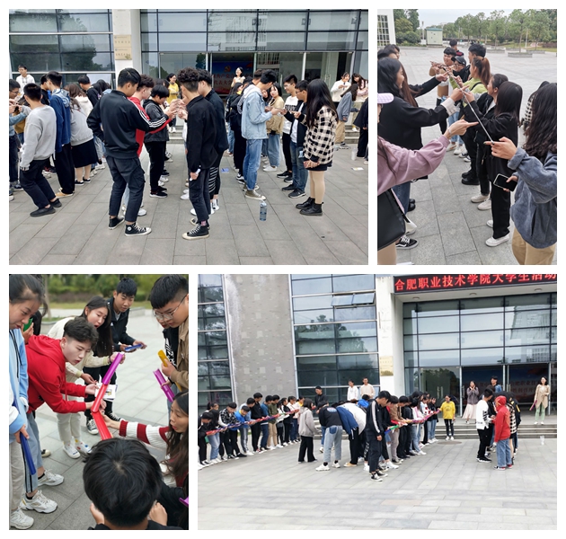 心理委员培训团体活动“自我成长”素质拓展活动由两部分组成。首先带领大家参观了两个校区的心理咨询室、团体心理活动室、心理沙盘室、心理宣泄室和音乐放松室等,让大家了解并积极向同学们宣传学校心理健康教育指导中心的服务资源。之后进行了室外心理素质拓展活动,包括齐心协力、球行千里、信任你我他、指压板跳大绳、旱地赛龙舟等,锻炼了同学们的团队协作精神,通过磨合增添默契,提高心理委员大家庭的凝聚力,在今后的工作中形成合力助人自助。