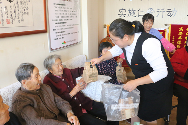 慰问过程中,护理学院教工党支部的党员们为老人们送上面包、蛋糕等慰问品,并同学生一起分组为老人们修剪指甲,亲切地和与老人们谈心拉家常,仔细询问老人们的日常生活起居、饮食以及身体健康等情况,让老人们真切体会到“儿孙绕膝下,夕阳无限好”的幸福美满,感受到来自护理学院教工党支部的关爱。