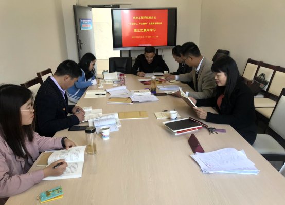 11月4日上午,机电工程学院党总支在机电楼201会议室举行“不忘初心、牢记使命”主题教育第三次专题读书班。在前期个人自学、读原著、学原文、悟原理的基础上,对照《中国共产党章程》《关于新形势下党内政治生活的若干准则》《中国共产党纪律处分条例》进行自我检查。该院党总支委员、教工党支部委员、学生党支部全体党员及校主题教育第七指导组成员陈辛琦参加学习活动。学习班由该院党总支副书记(主持工作)王克勇主持。