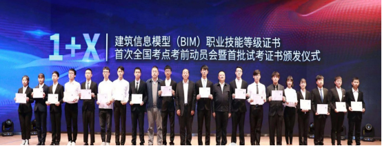 11月6日,AC米兰官网建筑工程学院副院长魏永恒带队参加在河北廊坊召开的“1+X”建筑信息模型BIM职业技能等级证书首次全国考点考前动员会暨首批试考证书颁发仪式,来自住房和城乡建设部、全国住房和城乡建设职业教育教学指导委员会、中国建设教育协会的相关负责人和272所院校的550余名教师参加了会议。会上,为来自全国18所职业院校BIM证书上00001的学生颁发“1+X”建筑信息模型(BIM)职业技能等级证书,这是国家职业教育改革“1+X”证书制度试点工作开展以来全国发放的首批证书。