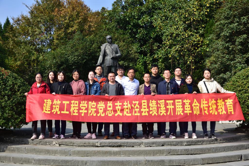 为了缅怀革命先烈,传承革命精神,根据学校党委“不忘初心、牢记使命”主题教育统一安排,11月9日至10日,建筑工程学院党总支组织党员赴泾县绩溪开展革命传统教育。