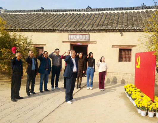 活动首日,党员们到达萧县蔡洼淮海战役红色旅游景区,蔡注是准海战役总前委会议的旧址,同时也是华东野战军指挥部旧址所在地,因此被称为“英雄会师地”和“淮海战役第一村”。面对鲜艳的中国共产党党旗,全体党员重温了入党誓词,铮铮誓言久久回荡,表达了“不忘初心、牢记使命”的坚定政治信念。