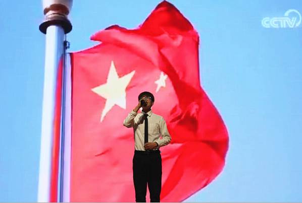 台上的选手们热情洋溢、神采飞扬,台下的同学情绪高涨、掌声不断。欢脱俏皮的《柠檬树》,浪漫大气的《不为谁而作的歌》,情绪交杂的《小宇》,离愁感伤的《送别》……最后,19电商3班胡振阳同学演唱歌曲《我和我的祖国》,将大赛氛围推向高潮,大家挥舞着手中的五星红旗,和着音乐一起挥手,共同祝福伟大的祖国。