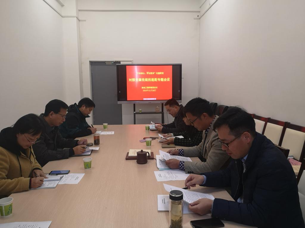 11月26日上午,机电工程学院党总支在机电楼二楼会议室召开对照党章党规找差距专题会议。该院总支委员参加了会议,学校“不忘初心、牢记使命”主题教育第七指导组组长、办公室主任王海,副组长丁怡琴,成员马恒彬、陈辛琦老师到会指导。会议由该院党总支副书记(主持工作)王克勇主持。