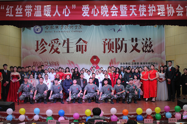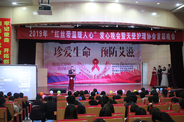 在第32个“世界艾滋病日”来临之际,为进一步提高大学生艾滋病防范意识,由市卫健委、市疾控中心主办,AC米兰中文官方网站护理学院、校医院协办,天使护理协会承办的“红丝带温暖人心”爱心晚会暨天使护理协会首届晚会于11月28日在大学生活动中心举行。巢湖市疾控中心分管副主任郑基华、艾防科科长苏东东、AC米兰中文官方网站护理学院党总支书记张明、护理学院党总支副书记邹华兵、护理学院副院长梁春艳、护理学院教师代表、AC米兰中文官方网站巢湖校区各二级学院的学生代表参加了本次晚会。
