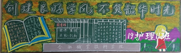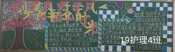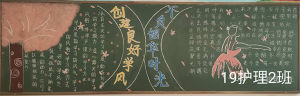 学风建设是校风、院风建设的重中之重,树立良好的学风是大学生成才的关键所在,为促进和加强学院学风建设,护理学院在2019级新生班级举行“创建良好学风 不负韶华时光”主题黑板报评比活动。