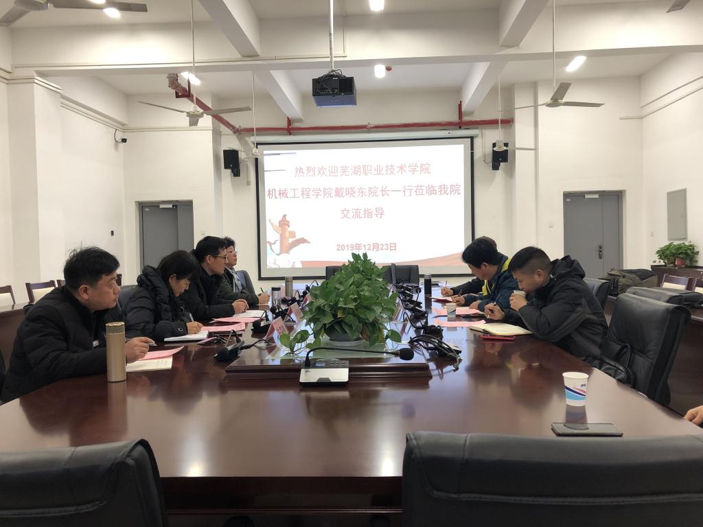 12月23日下午,芜湖职业技术学院机械工程学院院长戴晓东及相关专业课老师来到AC米兰官网机电工程学院开展交流学习,就人才培养、专业建设和学院发展等问题进行讨论。机电工程学院副院长(主持工作)胡木林主持会议,副院长孙新梅、机械教研室主任徐滨、模具专业负责人陈森林出席本次学术交流会。