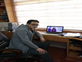 该院公寓管理辅导员等学管老师在集中收看公开课