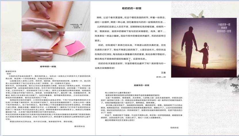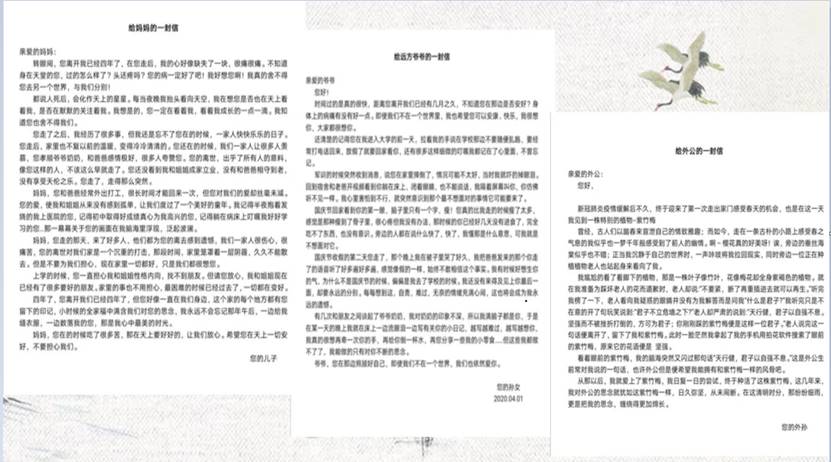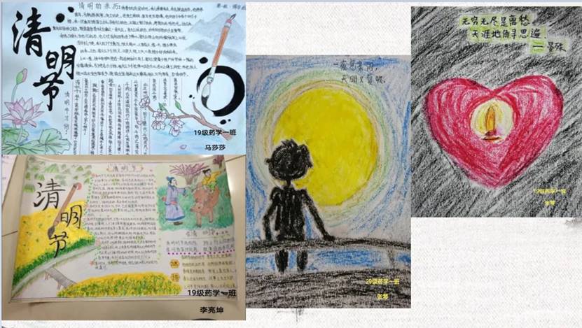 本次活动从四项内容展开。一是文化传古今,同学们认识清明节传统节日的由来,了解清明节礼敬祖先慎终追远和踏青郊游亲近自然的两大节令传统。二是鲜花赠故人,同学们分别展示自己为献给逝去的抗疫英雄和手足同胞而手工制作的纸花。三是家书念恩情,学生用手抄报、电子文档、漫画图等多种形式向自己的亲人朋友写一封家书,用以表达自己的思念与感激之情。四是浊酒祭英魂,深刻悼念已逝的英魂,更加坚定党的领导,树立战胜疫情的信心。