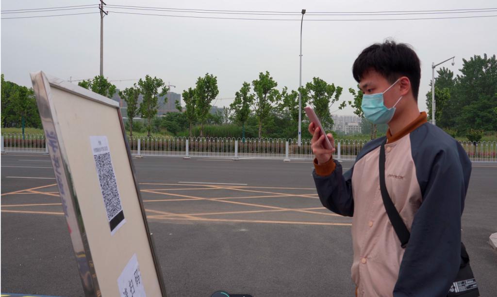 学生在进行安康码扫码