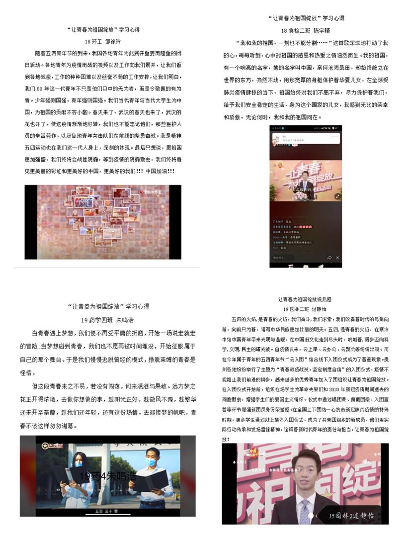 5月4日,团中央在微博、微信、B站、快手、抖音等各大网络平台@共青团中央账号以及学习强国平台同步举办“让青春为祖国绽放”大型网上主题团日活动,该院学生当天通过各大网络平台线上收看节目,并用文字记录自己的观后感言。