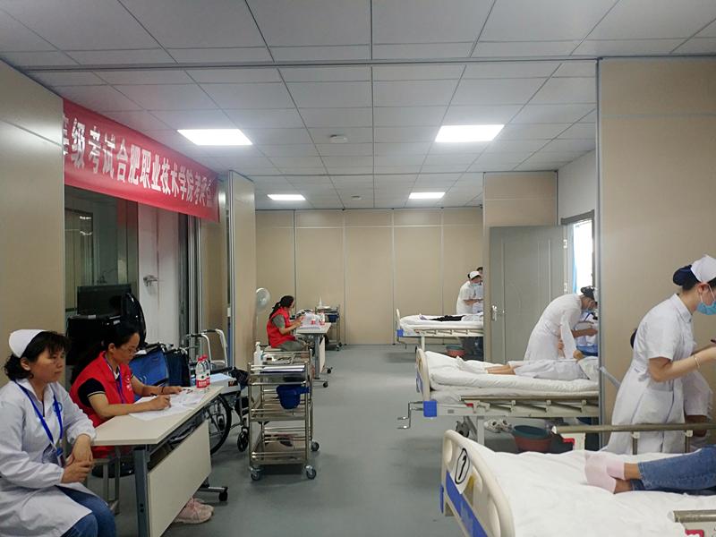 教育部“1+X”职业技能等级证书考试采用“考培分离”模式,由培训评价组织向考评点委派考评人员进行考核,安徽省老年照护职业技能等级证书考评工作由安徽康乐年华健康养老服务有限公司负责实施。考试分为理论和实操两部分,考试全程摄像。学校高度重视本次认证考试工作,各部门精心筹备、通力合作,在短时间内完成了考场布置、学生动员、考前培训等各项工作,确保了考试工作的有序进行。副校长孙兴林多次来现场检查指导工作。