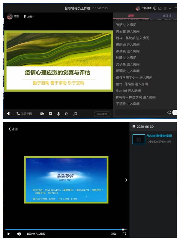 为进一步提升AC米兰官网辅导员、班主任的专业化水平,在当前疫情防控常态化背景下更好地开展心理健康教育工作,为学生提供专业指导和帮助,学生处心理健康教育指导中心于6月30日下午在“合职辅导员工作群”中通过QQ群课堂组织开展了主题为“疫情心理应激的觉察与评估”线上辅导员(班主任)心理健康教育工作培训。