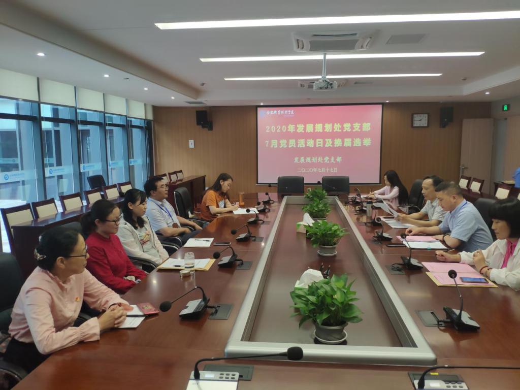 7月17日下午,发展规划处党支部在行政楼五楼会议室召开党支部委员换届选举大会,全体党员参加会议。会议由上一届党支部书记方鲁兵主持。