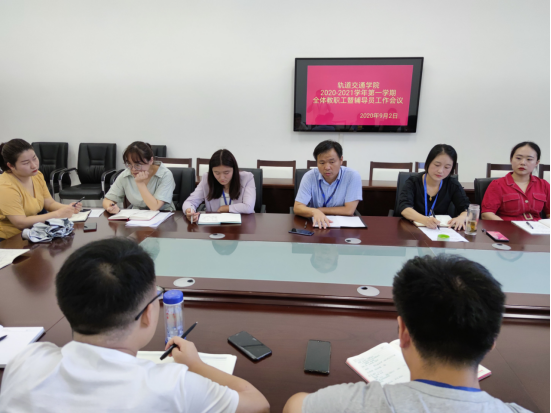 为扎实做好2020年新学期老生开学返校各项准备工作,轨道交通学院于9月2日上午在轨道楼210会议室召开新学期全体教职工暨辅导员大会。全体教职工、专兼职辅导员参加会议。会议由轨道交通学院党总支书记佘海月主持。
