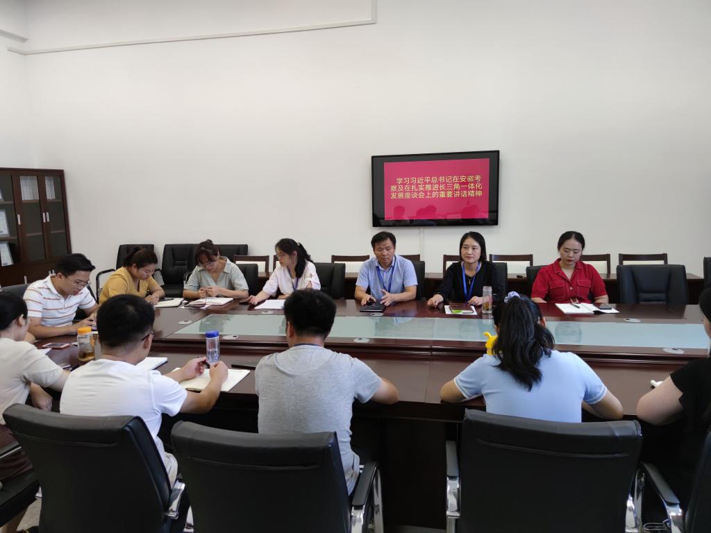 会议传达学习了习近平总书记安徽考察及在扎实推进长三角一体化发展座谈会上的重要讲话精神。该院全体教职工结合各自工作分别交流发言,既谈学习心得体会,又谈贯彻落实的思路办法,认真研学。