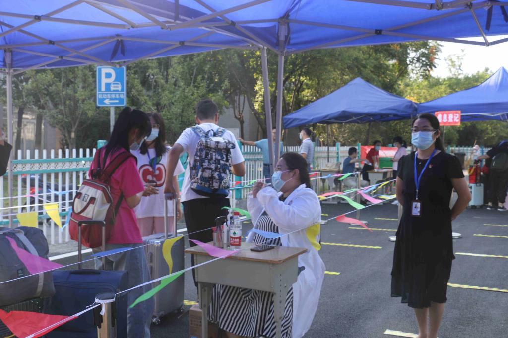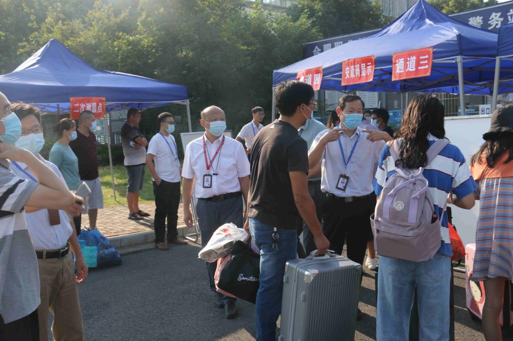 早上七点,各工作组人员已经全部到位,严格按照学校疫情防控相关要求,用扎实细致热情的工作做好学生安全返校工作。学生们按照计划时间到达校门口,间隔排队、出示身份证件、健康码,测温、消毒、登记、进校,报到现场井然有序。上午八点,学校党委书记罗兆好、副校长周晓隆、鼓山校区管委会主任周泽山、总务处、保卫处、学生处等相关部门负责人深入到医学院报到现场,看望返校学生,慰问工作人员。当天晚上,医学院班主任深入学生宿舍走访及慰问学生。走访中,老师们与同学们亲切交流,关心他们的学习与生活,提醒学生注意卫生、勤晒衣被、开窗通风、不走不窜、认真投入学习等,叮嘱同学们要继续重视个人防护,注意身体健康、心理健康,保持良好的学习生活规律。