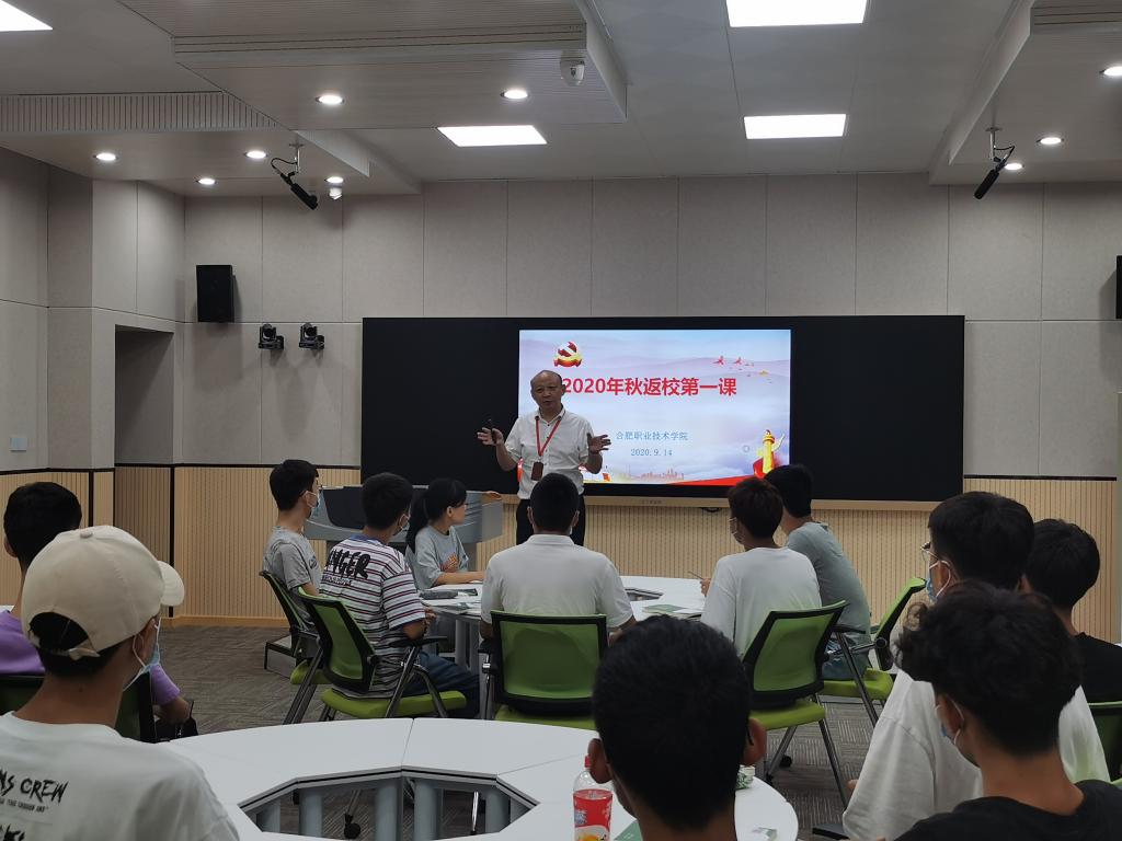 9月14日下午,校党委委员、副校长周晓隆教授在科技楼录播教室为建筑工程学院2019级工管、建装、环艺专业学生讲授“返校第一课”,本次授课采用线上线下同步直播的形式进行。