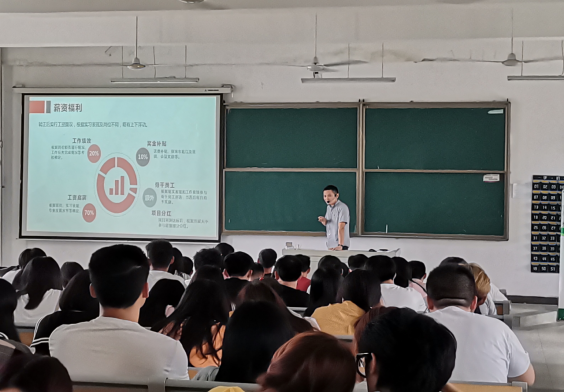 宣讲人首先向同学们介绍了中徽生态环境有限公司的基本情况:公司原名中徽园林建设有限公司,是安徽省唯一具有国家风景园林设计甲级资质、园林绿化一级资质等13项资质的企业。公司主营业务为园林绿化建设、生态环境修复、水土污染治理、智慧生态构建、技术创新研发。接下来,宣讲人向同学们介绍了公司所需人才及相应岗位能力要求,分析了员工进入公司后的发展方向。会后,宣讲人和同学们进行了热烈的交流,对同学们关心的岗位能力要求、薪资待遇和发展空间进行了详细的说明。
