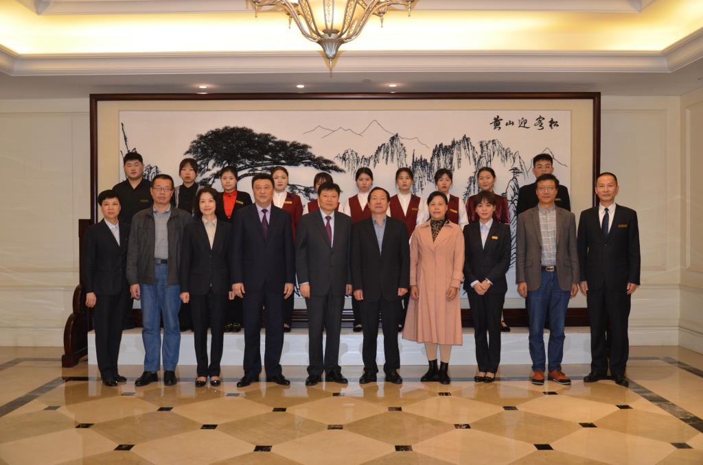 为加强我院学生顶岗实习管理,及时了解顶岗实习学生思想动态,进一步跟进实习生的思想政治教育工作,校党委书记罗兆好、经贸旅游学院党总支书记梅亚松、经贸旅游学院院长赵红、教学管理办公室主任孙永辉2020年10月16日前往安徽饭店进行实习检查调研。饭店党委书记、董事长、总经理龚林,副总经理王宏,人力资源部总监孙育红及实习岗位部门经理参与座谈调研。